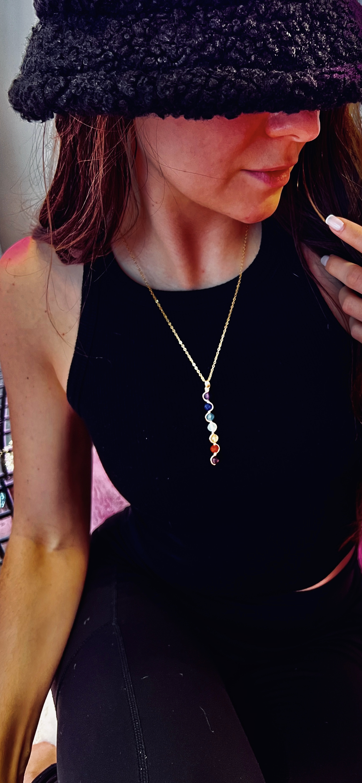 Feel aligned and clear with the simple Chakra Wave Wrap Pendant. Connecting to all 7 Chakras from your Root to your Crown Chakra these faceted cut gemstones give an extra sparkle to MindBodyChi's Chakra Pendant design.